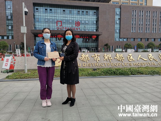 中國臺灣網4月22日訊 17日,四川省臺聯副會長兼秘書長彭英率隊前往成都市新冠肺炎定點收治醫院——郫都區人民醫院,看望戰疫一線的臺籍醫務工作者鄭蘭,同時送去全國臺聯委托轉交的慰問金。