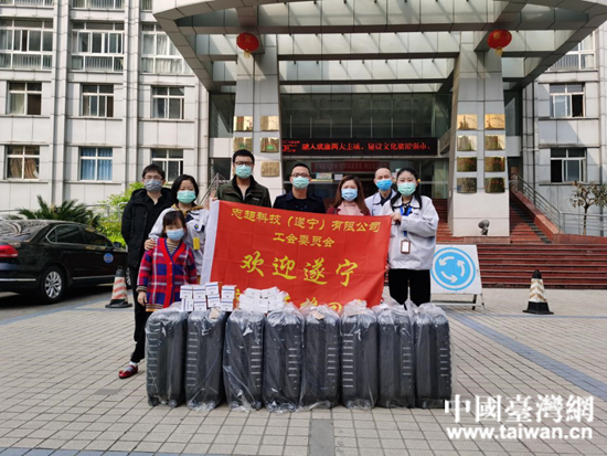 中國臺灣網(wǎng)4月24日訊 近日,在川臺資企業(yè)志超科技(遂寧)有限公司的工會委員會代表帶上早已準(zhǔn)備好的伴手禮(運(yùn)動手環(huán)、保溫水杯、行李箱),到遂寧市衛(wèi)生健康委員會和射洪市中醫(yī)院慰問順利返回遂寧的援鄂醫(yī)療隊(duì)16名抗疫英雄,表達(dá)最誠摯祝福和最崇高的敬意,展現(xiàn)出守望相助、共克時(shí)艱的同胞情誼。