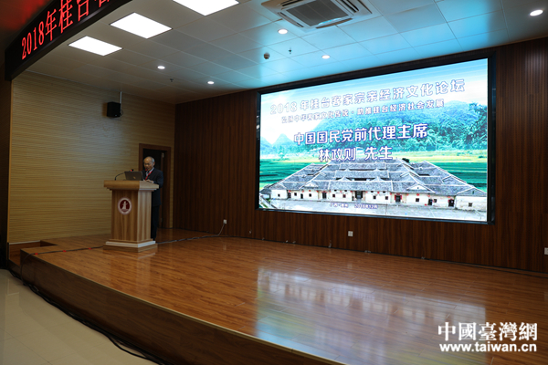 2018年12月,林政則出席桂臺客家宗親經(jīng)濟文化論壇并致辭。 (中國臺灣網(wǎng) 發(fā))