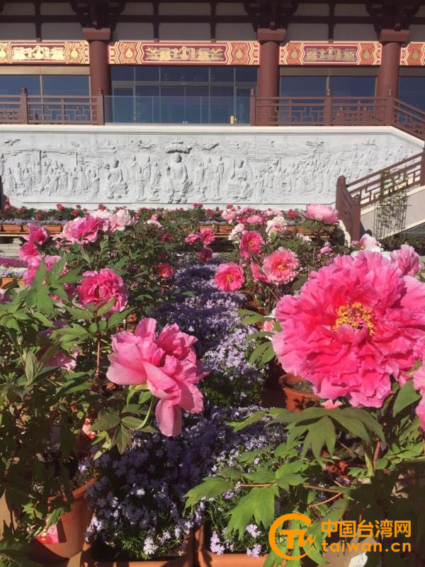 菏澤牡丹綻放日本佛光山法水寺(圖片來(lái)源:山東省臺(tái)港澳辦)
