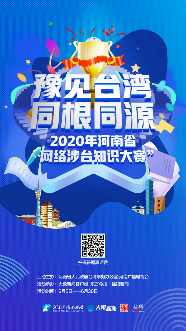 中國臺灣網6月9日訊 6月5日,“豫見臺灣 同根同源”2020河南省網絡涉臺知識大賽正式拉開帷幕。僅3天時間,已有123346人次參與答題。