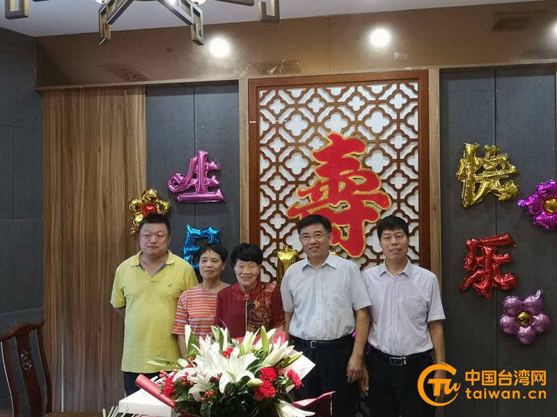 中國(guó)臺(tái)灣網(wǎng)7月15日訊 7月9日,開(kāi)封市委統(tǒng)戰(zhàn)部副部長(zhǎng)張志剛率領(lǐng)市臺(tái)辦、臺(tái)聯(lián)工作人員一行4人,為臺(tái)胞魏如美女士慶祝百歲生日。