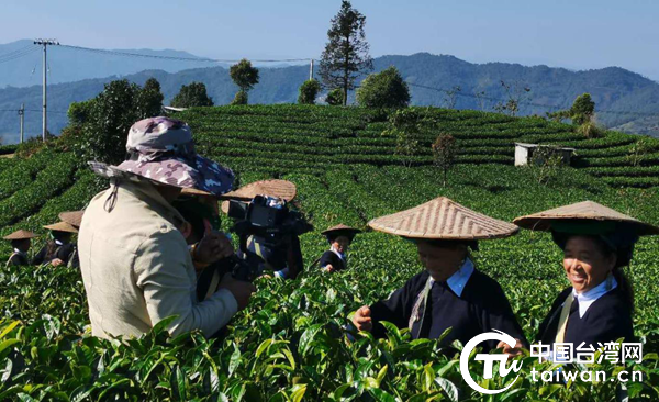 攝制組在墨江縣龍壩鎮打東村拍攝萬畝茶園。(普洱市委臺辦供圖)