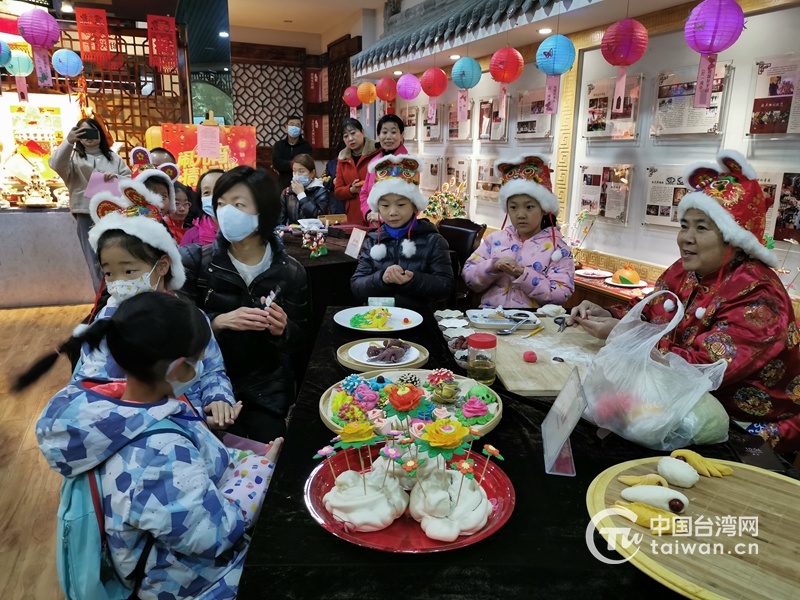 活動現場氣氛熱烈,大家同歡、同慶、同喜、同樂,不論是彩塑還是棉絮畫,關中禮饃或糖畫技藝,都引起了臺胞們的極大興趣。