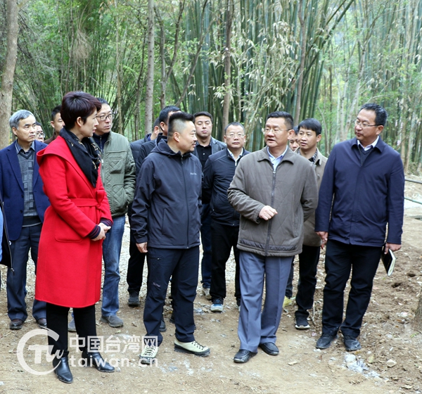 云南省委臺辦主任王忠(前排右二)走訪調(diào)研敏實控股集團九龍瀑布文旅項目(圖片來源:云南省臺辦)