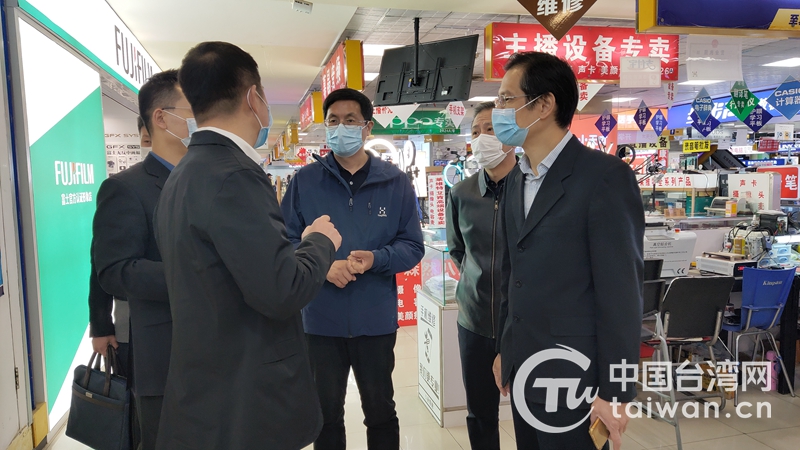 沈陽市臺辦主任與百腦匯公司領導在商場了解情況(圖片來源:沈陽市臺辦)