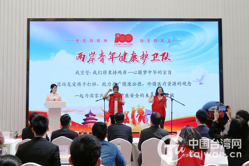 兩岸青年健康護衛隊代表莊嚴宣誓(圖片來源:杭州市臺辦)