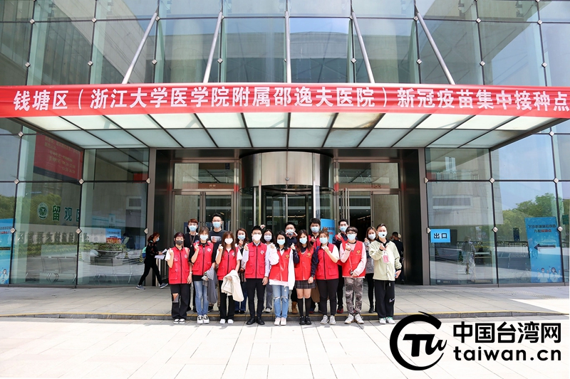 臺灣大學生青年健康護衛(wèi)隊在疫苗接種點(圖片來源:浙江省臺辦)