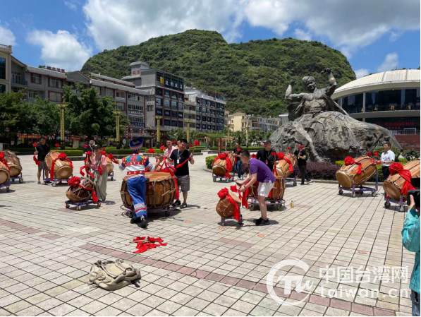 馬山縣位于廣西南寧市北部、大明山北麓、紅水河南岸, 聚居著壯、漢、瑤、苗等58萬各族人民,擁有中國長壽之鄉(xiāng)、中國民間文化藝術(shù)之鄉(xiāng)、中國會鼓之鄉(xiāng)等稱號。臺灣青年們剛走進(jìn)馬山縣,當(dāng)?shù)貢年牃g天喜地擂起會鼓歡迎臺灣鄉(xiāng)親,熱鬧歡騰的鼓聲響徹天際。