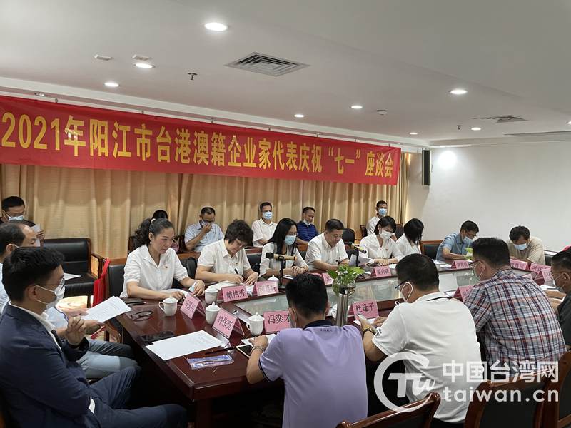 陽江市舉辦臺港澳籍企業家代表慶祝“七一”座談會。(圖片來源:陽江市委臺港澳辦)