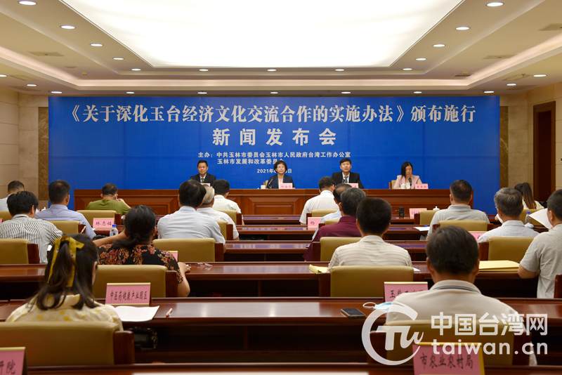中國臺灣網7月22日訊 近日,廣西玉林市召開新聞發布會,向社會各界通報,由玉林市臺辦、玉林市發改委牽頭制定的《關于深化玉臺經濟文化交流合作的實施辦法》(以下簡稱“玉林惠臺50條”)正式頒布施行,該辦法與國臺辦“31條措施”“廣西80條措施”等惠臺利民措施一脈相承。