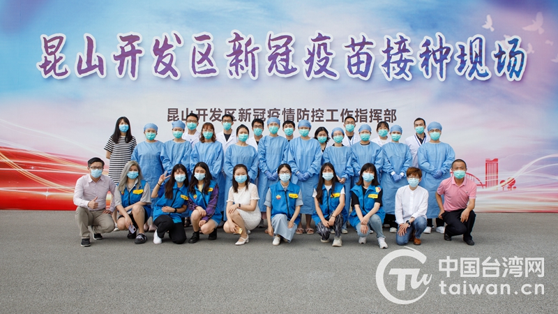 志愿者與醫(yī)護人員合影(圖片來源:昆山開發(fā)區(qū)臺服辦)