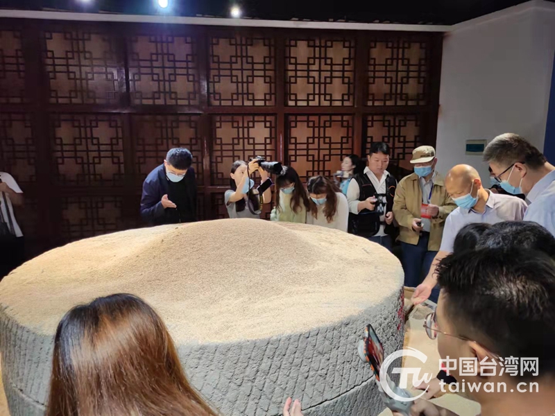 兩岸記者在“天下第一磨”查看平輿芝麻(圖片來源:河南省臺辦)