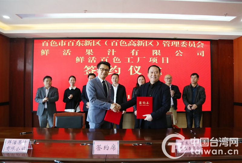 百東新區(qū)與臺(tái)企鮮活果汁有限公司簽訂投資合作協(xié)議(圖片來(lái)源:廣西百色市臺(tái)辦)