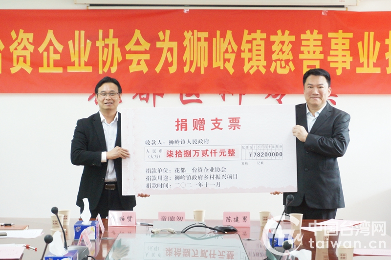 中國臺灣網12月6日訊 日前,廣州臺協花都分會16家會員企業現場捐資78.2萬元,助力花都獅嶺鄉村振興和慈善事業。