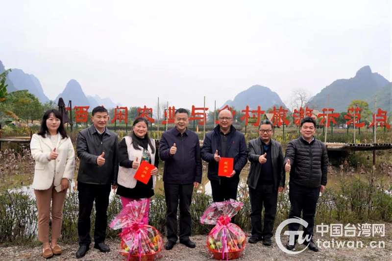 中國臺灣網(wǎng)1月25日訊 近日,桂林市委常委蔣育亮率全市涉臺工作部門走訪慰問陽朔縣臺資企業(yè)世外桃源和桂林市歸義生態(tài)農(nóng)業(yè)有限公司,與臺胞臺商進(jìn)行座談交流,并送上新春祝福和慰問金。