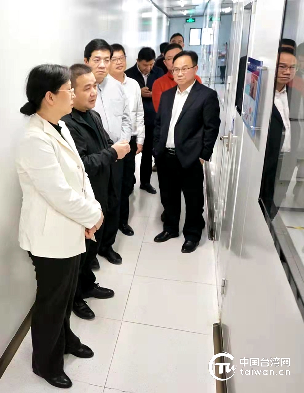 3月10日,廣西臺(tái)辦主任侯線紅(左一)考察桂臺(tái)合資企業(yè)桂林芯隆科技有限公司生產(chǎn)流程。(中國(guó)臺(tái)灣網(wǎng) 發(fā))