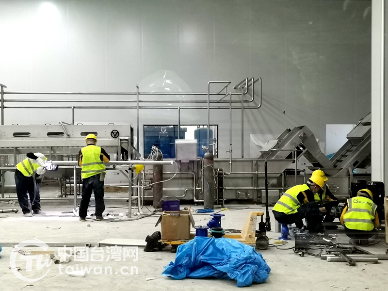 鮮活果汁百色加工項目正在進行生產(chǎn)線設備安裝。(圖片來源:廣西百色市臺辦)