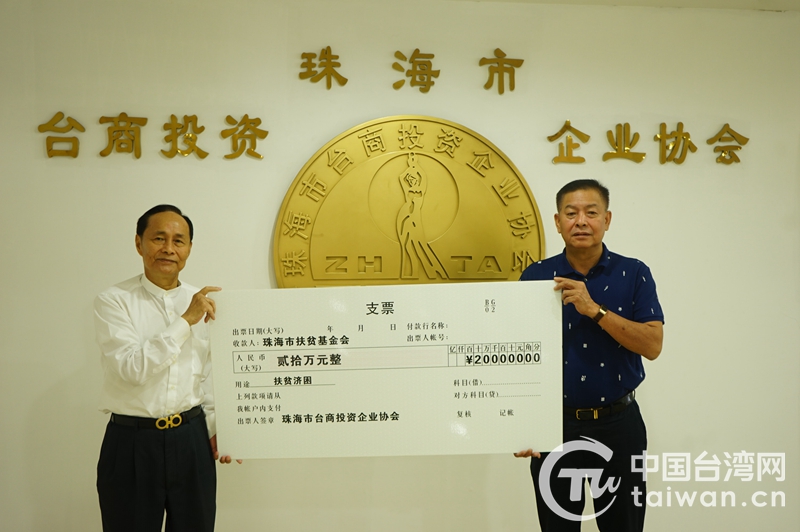 中國臺灣網7月4日訊 近日,珠海市臺商投資企業協會在市臺商活動中心舉行2022年“廣東扶貧濟困日”捐款活動,向市扶貧基金會捐款20萬元,為鄉村振興貢獻臺商力量。
