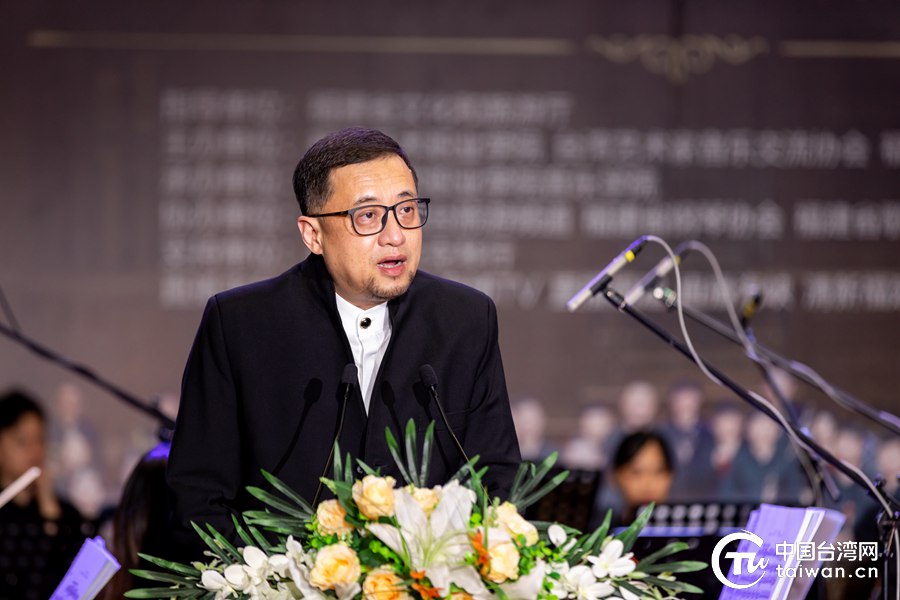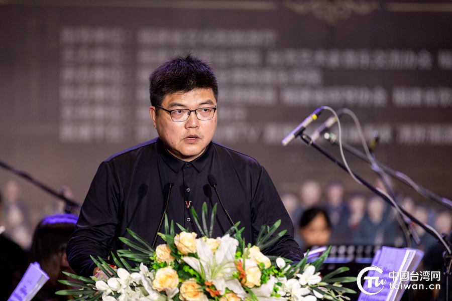 臺灣藝術家音樂交流協(xié)會秘書長、兩岸藝術青年聯(lián)合交響樂團首席樂手劉融致辭(中國臺灣網發(fā))