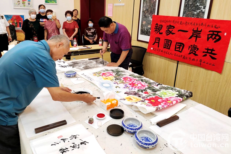 沙畫、剪紙、面塑表演,表演者用精湛的手法勾勒出嫦娥奔月、玉兔抱月的神話故事。書畫交流現場墨香陣陣,一筆一劃,描畫出中秋節日盛景,為兩岸書畫家增進了解、融洽感情、弘揚民族傳統文化架起一座橋梁。剪紙、捏面塑表演則極具民俗特色,傳遞著淳樸的鄉情。