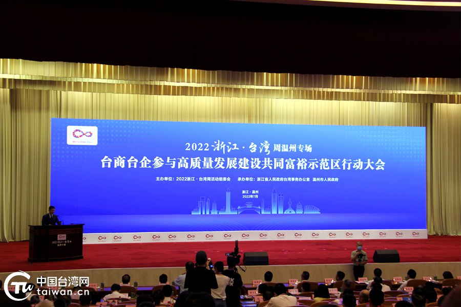 2022年7月21日,浙江·臺(tái)灣周溫州專場暨臺(tái)商臺(tái)企參與高質(zhì)量發(fā)展建設(shè)共同富裕示范區(qū)行動(dòng)大會(huì)開幕現(xiàn)場。(中國臺(tái)灣網(wǎng) 王大勇 攝)