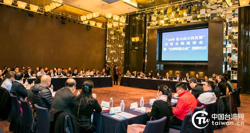 "40年我與四川同發展"臺資企業座談會,為40家在川“臺資明星企業”授牌。(圖片來源:四川臺辦)
