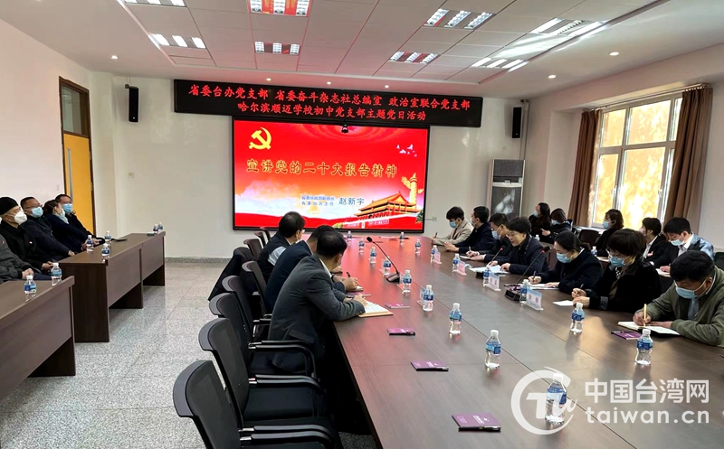中國臺灣網(wǎng)10月28日訊 10月27日,黑龍江省委臺辦機關(guān)全體黨員、省委《奮斗》雜志社總編室、政治室聯(lián)合黨支部全體黨員走入臺資企業(yè)哈爾濱順邁學校,開展“宣講黨的二十大精神”主題黨日活動,推動“能力作風建設(shè)年”活動走深走實。