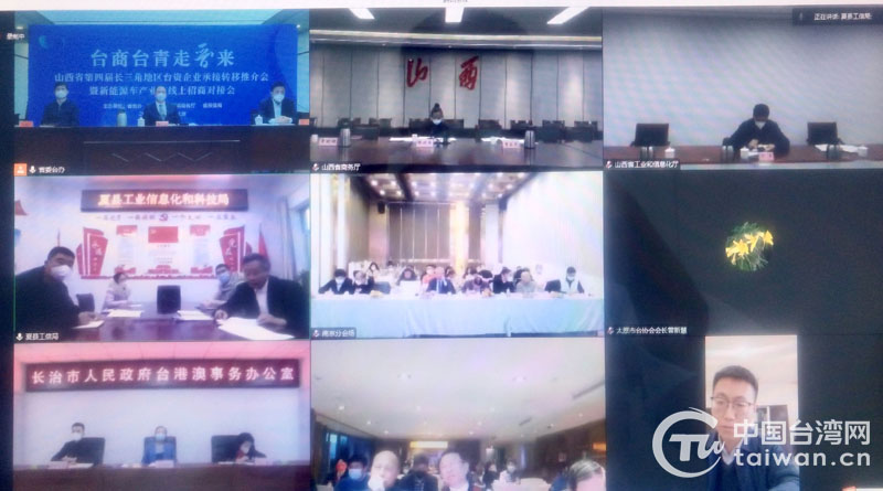 中國臺灣網12月21日訊 近日,山西省臺辦聯合省工信廳、省商務廳、省投促局,以“線上線下”相結合方式成功舉辦了“臺商臺青走晉來”山西省第四屆長三角地區臺資企業承接轉移推介會暨新能源車產業鏈線上招商對接會。山西省臺辦和南京、昆山三地同時設立主會場,山西省直有關廳局、太忻一體化經濟區太原運營中心和部分市縣設分會場。來自南京、昆山兩地的臺商嘉賓,山西省直各有關單位及太原、晉中、長治、晉城、運城等地有關縣區、開發區及各相關部門負責同志共100余人在線上參加了活動。