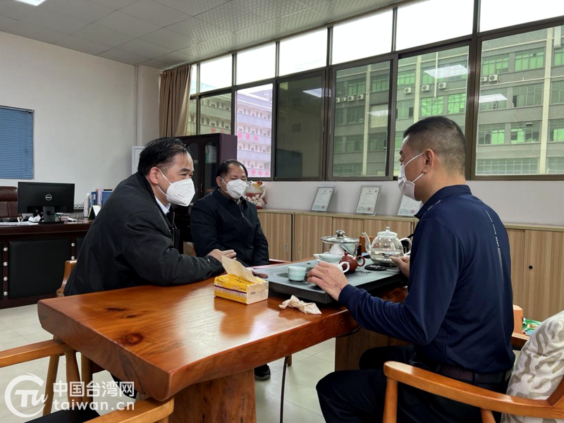 王愛(ài)平(左一)走訪(fǎng)慰問(wèn)臺(tái)企河源怡德科技有限公司(圖片來(lái)源:河源市臺(tái)港澳辦)