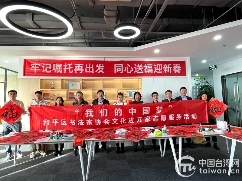 中國臺灣網1月20日訊 天津市和平區近日舉辦“兩岸一家親 共慶幸福年”臺胞迎新春聯誼活動,在區臺胞臺青臺屬與和平區社會各界群眾一起通過寫春聯送福字來表達迎接新年的好心情,沉浸式感受中華傳統文化的魅力。