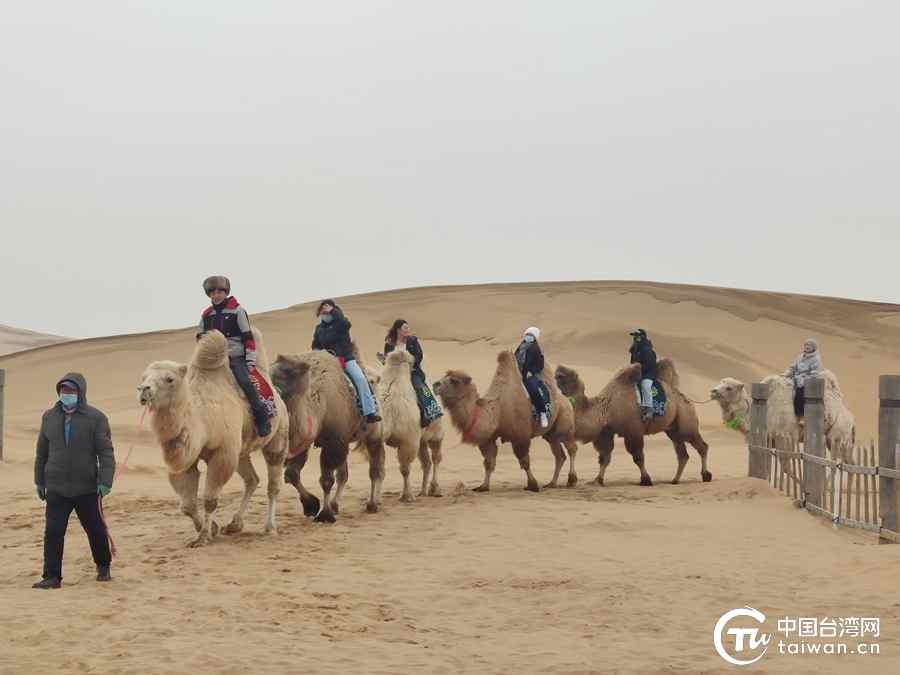 參加全國臺聯(lián)冬令營的營員們,12日一早從呼和浩特驅(qū)車,來到了位于鄂爾多斯庫布其沙漠最東端的響沙灣。