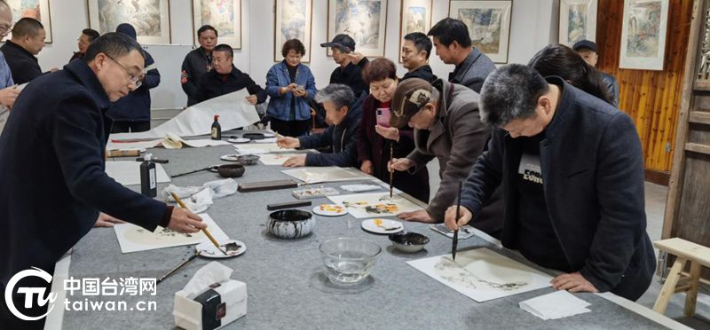 浦江書畫家、臺胞臺屬零距離交流書畫創(chuàng)作。(中國臺灣網(wǎng) 發(fā))