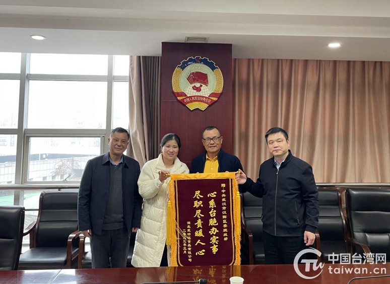 臺胞到漢陽區(qū)委臺辦贈送錦旗(圖片來源:武漢市臺辦)