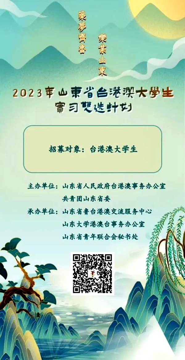 “2023山東省臺(tái)港澳大學(xué)生實(shí)習(xí)雙選計(jì)劃”由山東省政府臺(tái)港澳事務(wù)辦公室、山東大學(xué)、山東團(tuán)省委主辦,山東省魯臺(tái)港澳交流服務(wù)中心、山東大學(xué)港澳臺(tái)事務(wù)辦公室、山東省青聯(lián)承辦,在山東省大型國(guó)有企業(yè)、民營(yíng)企業(yè)、事業(yè)單位中征集常年有效實(shí)習(xí)崗位,全國(guó)各高校臺(tái)港澳大學(xué)生,特別是在魯就讀的臺(tái)港澳大學(xué)生,可通過(guò)掃描二維碼,進(jìn)入實(shí)習(xí)雙選平臺(tái),挑選適合自己的崗位開(kāi)展實(shí)習(xí)。此次發(fā)布的195個(gè)崗位,80%以上提供食宿和實(shí)習(xí)補(bǔ)貼。