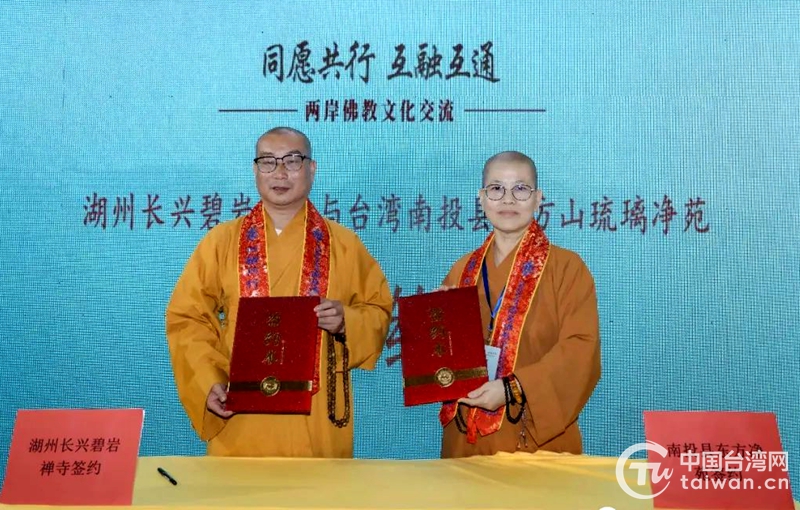 隨后,長興碧巖禪寺與臺灣南投縣東方凈苑簽訂交流合作協議,旨在進一步創新交流形式,推動兩地佛教界的信息聯通共享,豐富兩地佛教文化交流內涵,切實推進兩地佛教界在文化、教育、慈善等領域交流合作的深度和廣度,促進兩岸同胞越走越近。