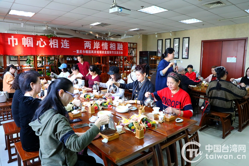 中國臺灣網10月24日訊 重陽節前夕,在渝兩岸婚姻家庭近30人相聚重慶巾幗園,參加“巾幗心相連 兩岸情相融”——重慶巾幗園兩岸婚姻家庭重陽節交流活動,通過茶文化體驗、精油健康體驗,以茶會友、以香傳情,進一步促進在渝兩岸婚姻家庭之間的情感聯絡和交流融合。