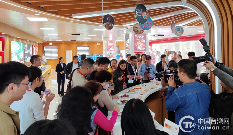 兩岸媒體人在展廳品嘗雙匯食品(河南省臺辦供圖)
