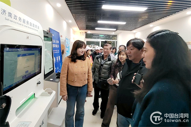 臺灣客人近距離體驗社區政務服務自助終端(濟南市臺港澳辦供圖)