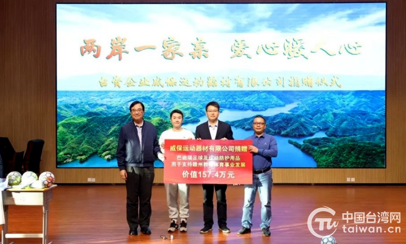 中國臺灣網(wǎng)11月24日訊 近日,“兩岸一家親 愛心暖人心”臺資企業(yè)威保運(yùn)動器材有限公司捐贈儀式在江西理工大學(xué)附屬金嶺學(xué)校舉行。