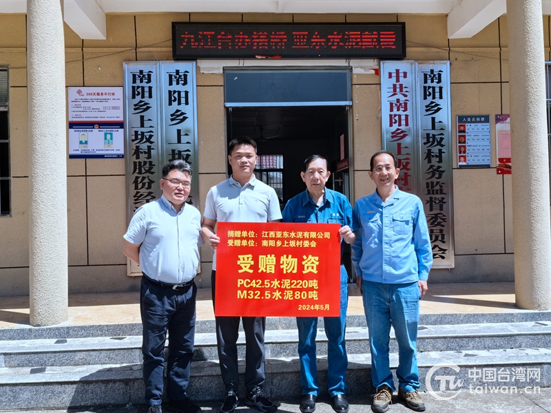 中國臺灣網5月17日訊 近日,臺企遠東集團亞泥(中國)控股公司江西亞東水泥有限公司向九江市臺辦鄉村振興幫扶村——瑞昌市南陽鄉上坂村捐贈PC42.5水泥220噸、M32.5水泥80噸,用于支持該村推進鄉村振興建設。九江市臺辦主任吳斌、江西亞東水泥有限公司總經理田隆等參加捐贈儀式并座談交流。