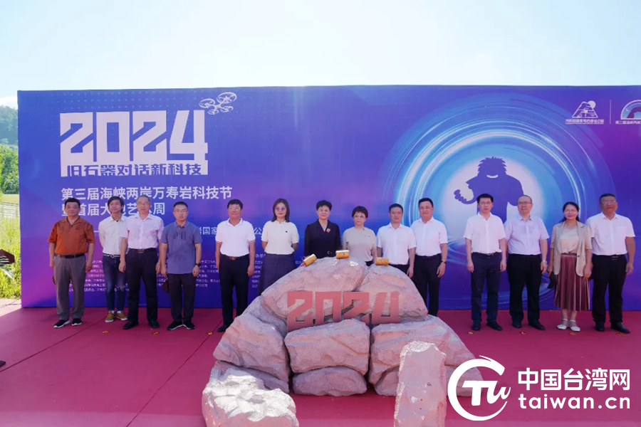 中國(guó)臺(tái)灣網(wǎng)7月5日訊 7月4日,第三屆海峽兩岸萬(wàn)壽巖科技節(jié)暨首屆大地藝術(shù)周活動(dòng)在位于福建省三明市的萬(wàn)壽巖國(guó)家考古遺址公園開(kāi)幕。開(kāi)幕式上,中共三明市委統(tǒng)戰(zhàn)部副部長(zhǎng)王秀文、三元區(qū)人大常委會(huì)主任林翠玲、廈門(mén)大學(xué)電子科學(xué)與技術(shù)學(xué)院黨委副書(shū)記林蕊共同為第三屆海峽兩岸萬(wàn)壽巖科技節(jié)系列活動(dòng)敲錘啟動(dòng)。三明市文旅局副局長(zhǎng)羅振青,三明市科協(xié)主席樂(lè)仁昌,臺(tái)胞代表復(fù)旦大學(xué)新聞傳播學(xué)博士葉柏增為科技節(jié)開(kāi)幕式致辭。