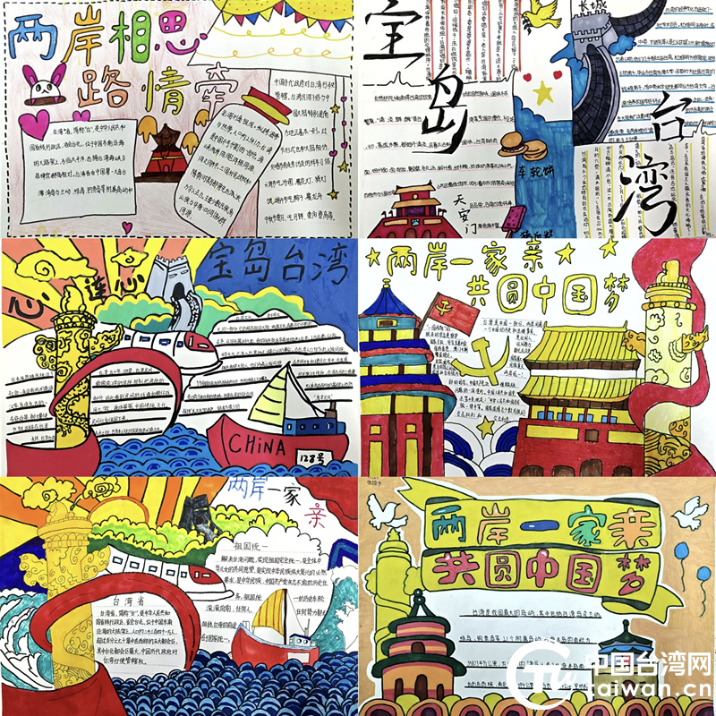 同學們認真收集臺灣的地理知識、歷史知識、風土人情等內容作為素材,用心錘煉每一個細節,用情填滿每一處色彩,將自己期盼臺灣早日回歸祖國懷抱的心聲,用畫筆描繪于紙上。