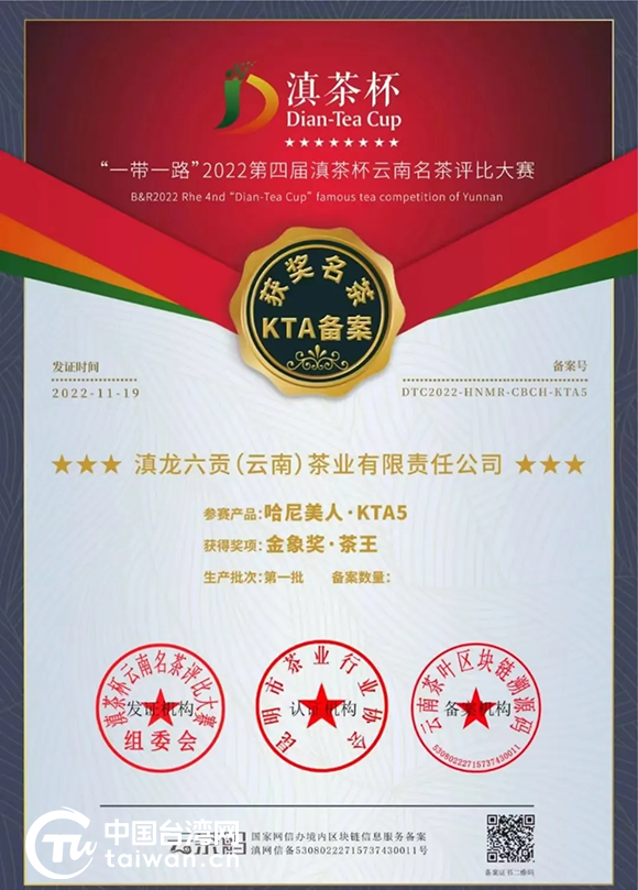 2022年邱寬武的“哈尼美人茶”榮獲云南省名茶證書