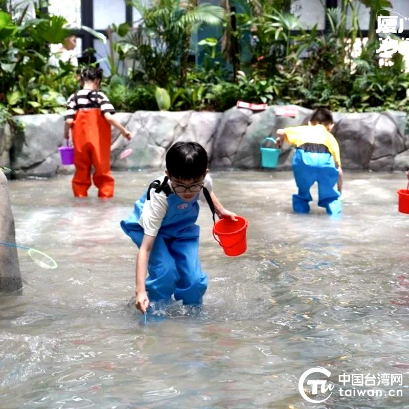感受童趣盎然,體驗“趕海”樂趣。換上趕海服,拎上小桶和網(wǎng)兜,兩岸金胞青少年們瞬間化身為潮汐小獵人,在人造潮池邊開啟一場觸手可及的海洋探險。