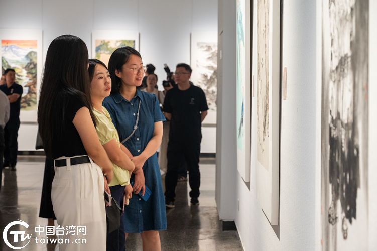 觀眾參觀“兩岸一家親 黔臺丹青繪風采”書畫展。(中國臺灣網發)