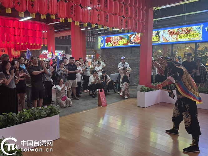 青年們在老北市觀賞東北特色表演。(中國臺灣網發)