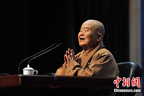 4月5日,星云大師是于廈大九十周年校慶之際,前來(lái)廈大參加“走近大師”系列講座,并發(fā)表“空有之關(guān)系”的演講。中新社發(fā) 王東明 攝