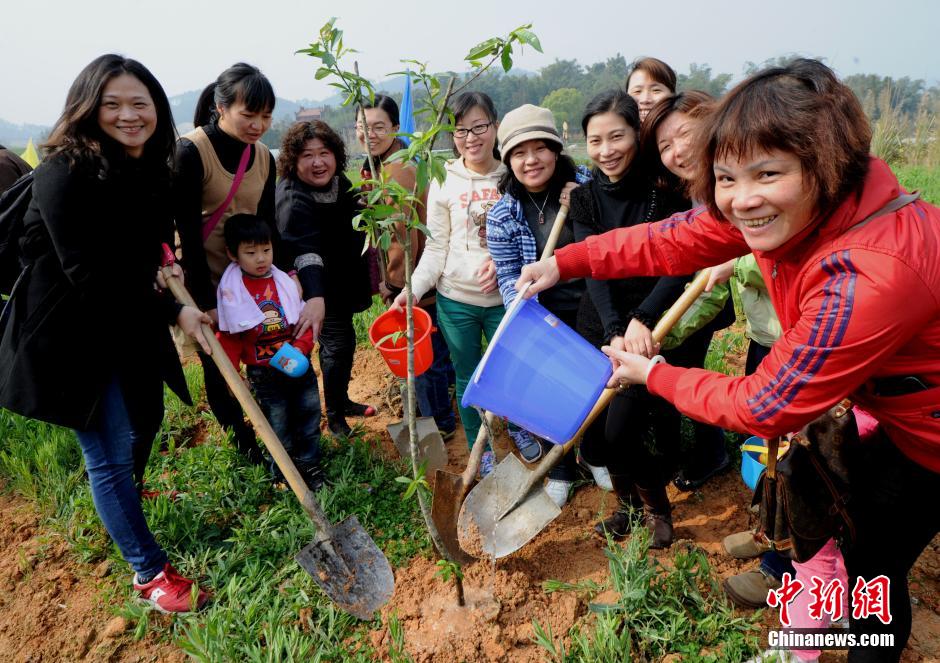3月14日,來自福州市臺胞投資企業協會“牽手之家”的臺胞臺屬代表正在種植“海峽巾幗林”。當日,福建省婦聯、福州市婦聯、福州市臺聯等聯合組織兩岸姐妹在福州閩侯縣白沙鎮孔元村開展“弘揚生態文明 、共建美麗家園--各界婦女共植‘海峽巾幗林’活動”,在榕機關干部、臺胞臺屬代表、“巾幗文明崗”、優秀女性、環保文明家庭代表等海峽兩岸姐妹共140人參加了該義務植樹活動,共同植下碧桃、紅千層等樹苗500多株。