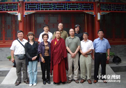 中國臺灣網6月30日北京消息 6月29日上午,參加京臺文化節的臺灣書畫家應邀參觀了北京雍和宮。北京市東城區政協副主席、區委統戰部部長郭瑞敏、區委統戰部常務副部長、區臺辦主任關連寶、區民族宗教僑務辦公室主任閆燕接待了臺灣朋友。